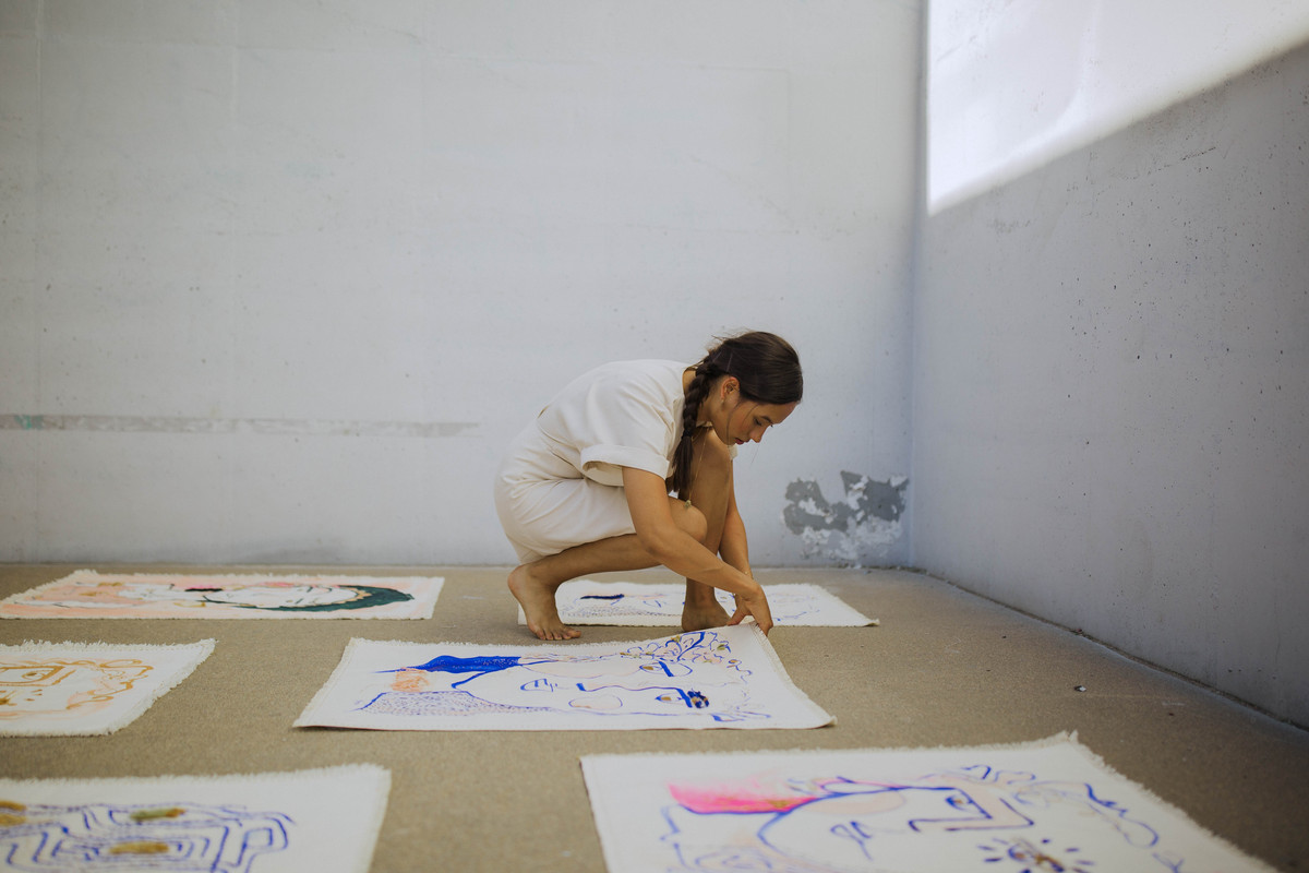 Inspired by traditional embroidery and, Raisa's work combines the lyrical movement of paint with the detail and structure of thread. Creating a story of color and texture uniquely her own.